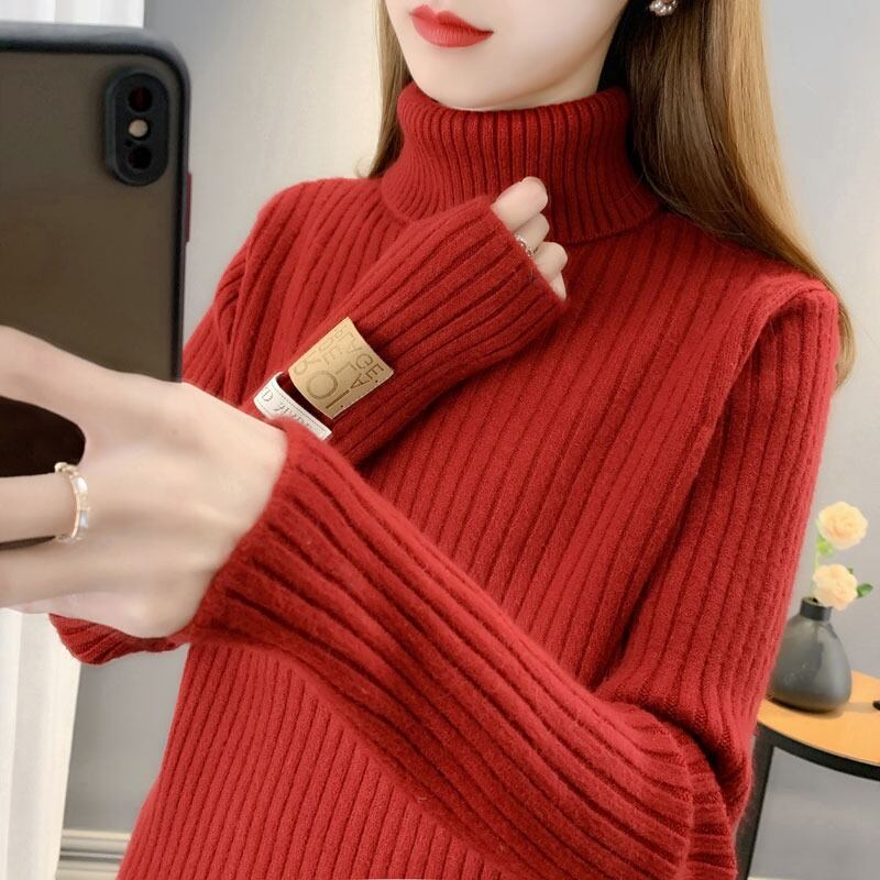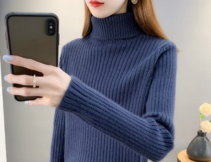 ハイネックで首元まで暖かく、リブで細見えする一着◎