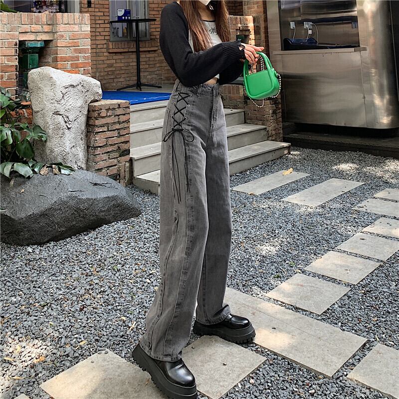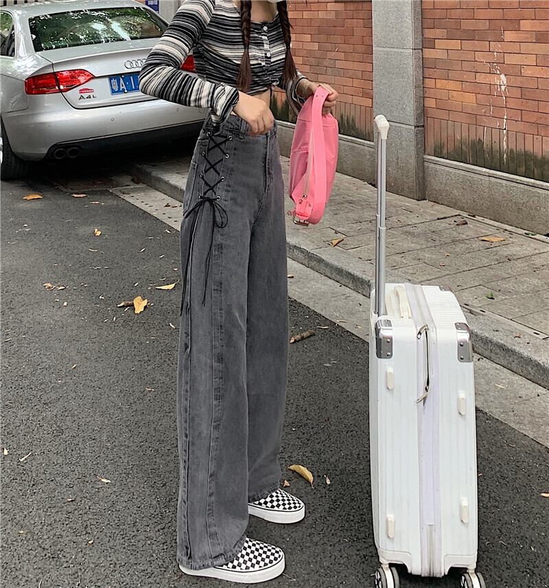 ボトムス パンツ Gパン ワイドパンツ デニムパンツ ロング ロング丈 ストレート ワイド Iライン リボン ハイウエスト サイドリボン レースアップ ポケット デニム かわいい カジュアル おしゃれ お洒落 かっこいい 大人可愛い こなれ感 ラフ ボーイッシュ ラブリー ルーズ 個性的 存在感 無地 オールシーズン シーズンレス 10代 20代 30代 レディース お出かけ 普段使い S M L XL 2XL 3XL 4XL ブラック