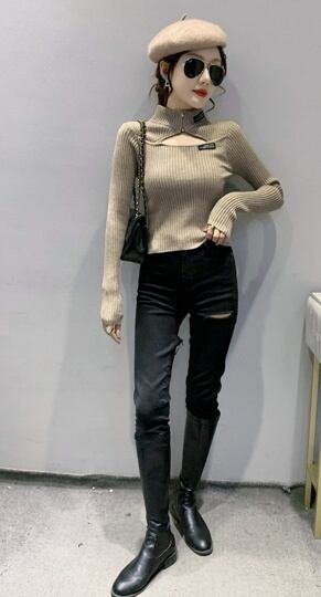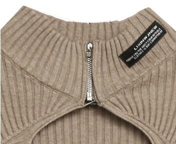 トップス ニットソー プルオーバー 袖あり 長袖 ハイネック スリム タイト 細身 ストレート Iライン スリット ファスナー リブ ニット 大人可愛い 大人 おしゃれ お洒落 かっこいい 大人女子 こなれ感 個性的 クール セクシー モダン 抜け感 無地 秋 冬 20代 30代 40代 レディース 普段使い 韓国 オルチャン ファッション スタイル モテ 穴あき S M L XL ブラック ベージュ