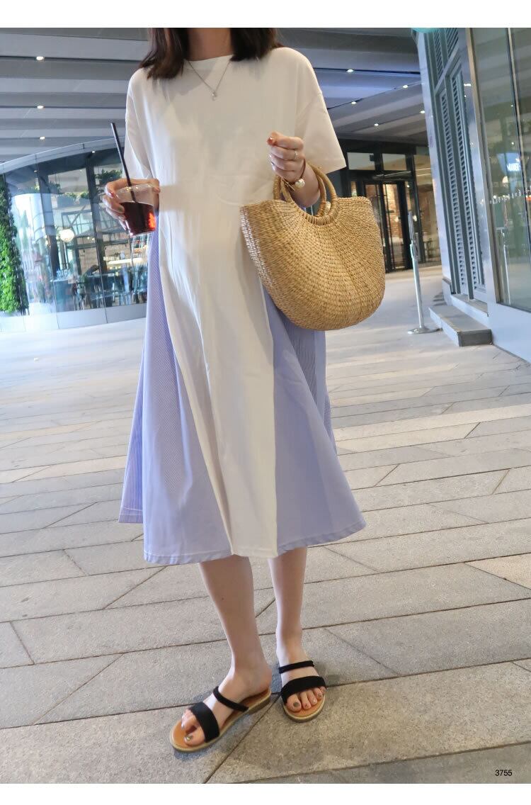 ワンピース ミドル丈 ミドル丈ワンピース ひざ丈 ひざ丈ワンピース 半袖ワンピース 半袖 ラウンドネック Uネック デザインブロック カラーブロック マタニティ マタニティウェア マタニティワンピース ブラック ホワイト 黒 白 M L XL お出かけ デイリー 普段使い 着回し 楽ちん ゆる ラフ オーバーサイズ カジュアル ママコーデ お散歩 ランチ 公園 こなれ感 おしゃれ コットン 綿 コットンワンピース 綿ワンピース ひざ丈ワンピ Tシャツワンピ シンプル 20代 30代 40代 レディース
