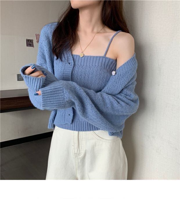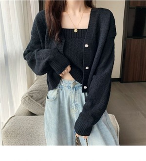 ショート丈のニットカーディガンのキャミソールの2ピース?