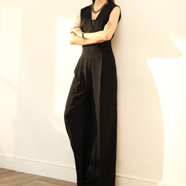 ドレス 衣装 フォーマルドレス ブラックドレス 袖なし Vネック 襟なし タイト スリム フレア パンツ ワイドパンツ オールインワン ジャンプスーツ ファスナー ハイウエスト フォーマル エレガント きれいめ ゴージャス 華やか 大人 上品 おしゃれ お洒落 クラシック クール モード系 スタイリッシュ モダン かっこいい マニッシュ 無地 30代 40代 レディース オフィス OL パーティー イベント 夏 S M L XL 2XL 3XL 4XL ブラック