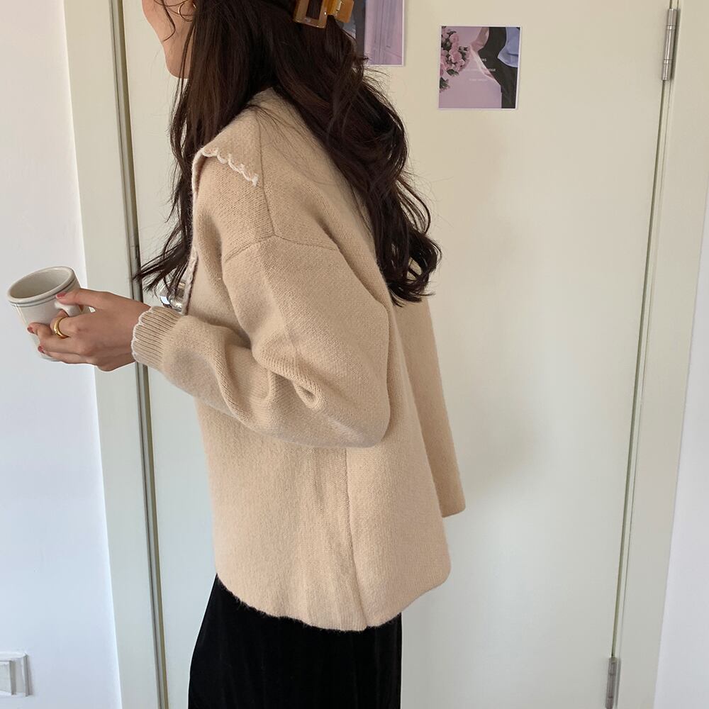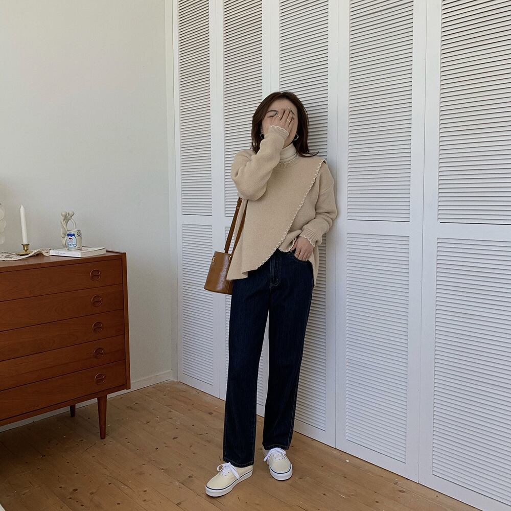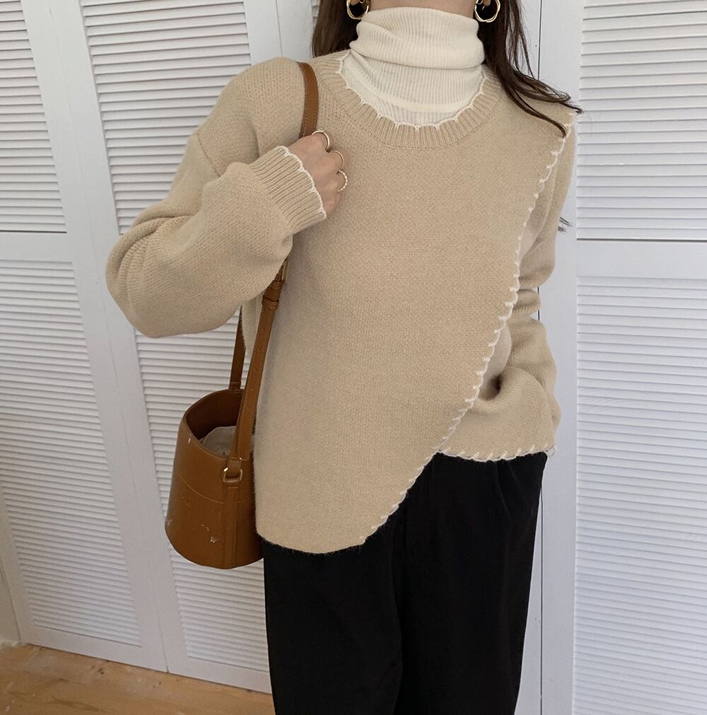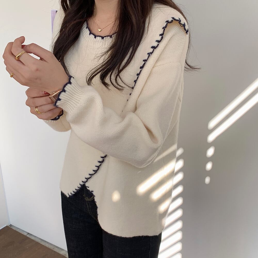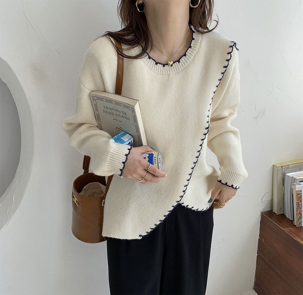 縁取りデザインが程よいアクセントになったシンプルなニットセーター