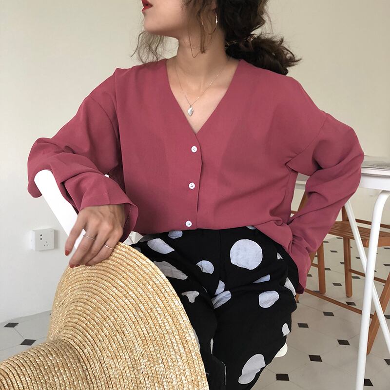 トップス シャツ シフォンシャツ ブラウス シフォンブラウス 長袖シャツ 長袖ブラウス ノーカラーシャツ ノーカラーブラウス Vネック 長袖 ロングスリーブ ふんわり袖 ふんわり ラフ ルーズ ゆったり ゆる 楽ちん シンプル 無地 オレンジ プラム ブラック 橙 梅 黒 ワンサイズ カジュアル コンサバ お出かけ デート デイリー 普段使い 着回し 春 秋 オフィスカジュアル オフィス 通勤 OL ママコーデ お散歩 公園 20代 30代 こなれ感 おしゃれ きれいめ 鮮やか 定番 体型カバー 華奢見え