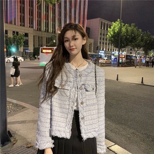 アウター ジャケット 上着 スーツ 袖あり 長袖 襟なし スリム タイト 細身 ストレート Iライン プリーツ 前開き ボタン 大人可愛い 大人 上品 おしゃれ お洒落 レトロ 大人女子 こなれ感 ラブリー キュート ガーリー エレガント モダン 主役級 存在感 抜け感 柄 チェック柄 格子柄 秋 10代 20代 30代 レディース デート お出かけ 重ね着 モテ M L ブルー