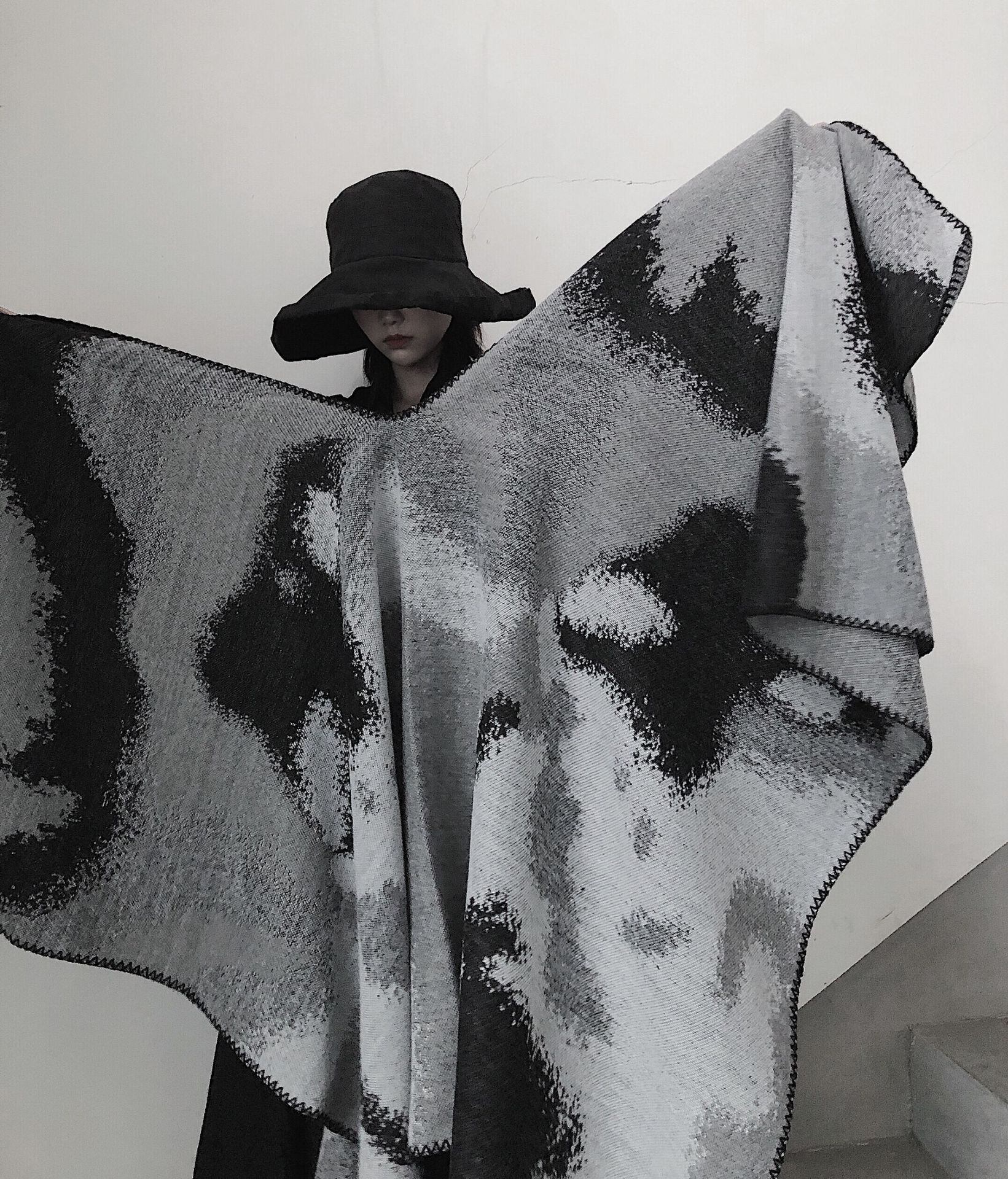 アウター ストール カーディガン コート 上着 羽織り マント ロング ロング丈 袖あり ふわふわ 前開き 厚手 きれいめ 大人 上品 おしゃれ お洒落 かっこいい こなれ感 マニッシュ ルーズ 個性的 クール モード系 エレガント モダン 存在感 フォーマル とろみ感 抜け感 無地 柄 秋 冬 30代 40代 50代 60代 レディース お出かけ 重ね着 暖かい 防寒 フリーサイズ ブラック グレー モノトーン