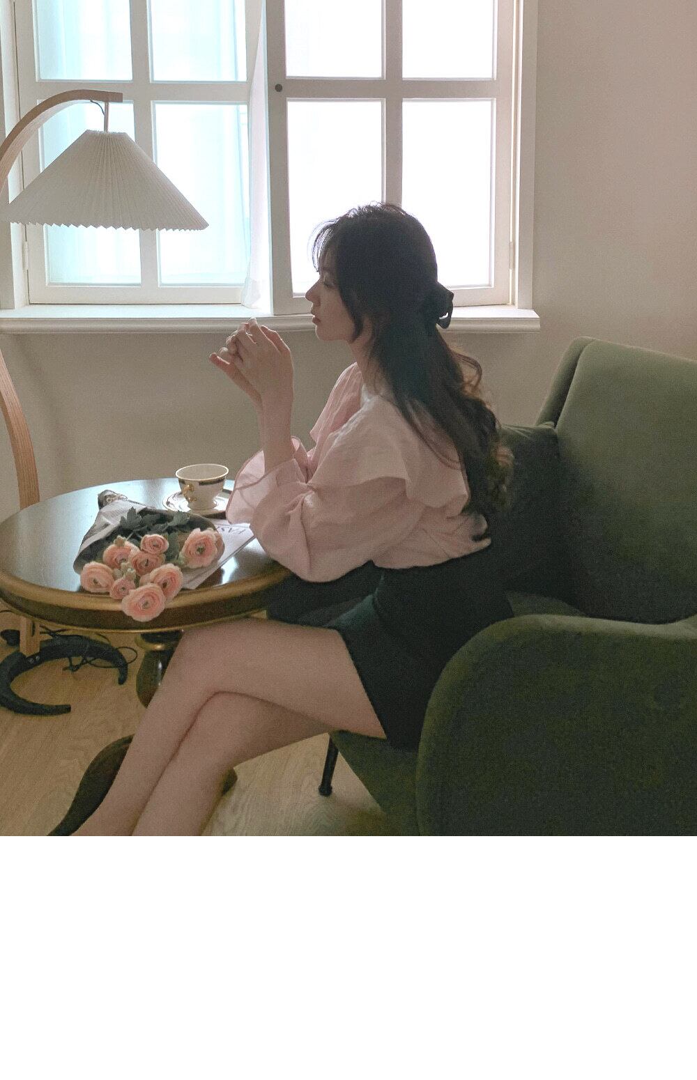 ベルスリーブとソリッドカラーが上品◎